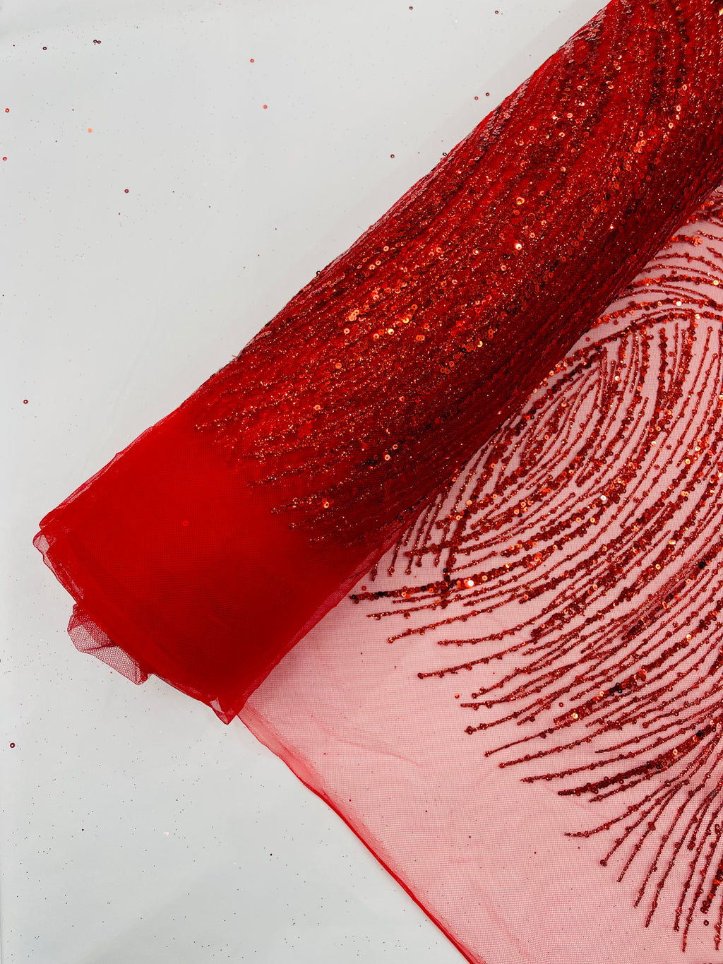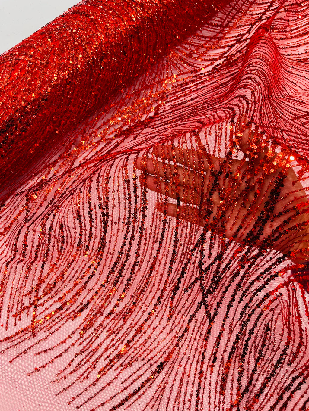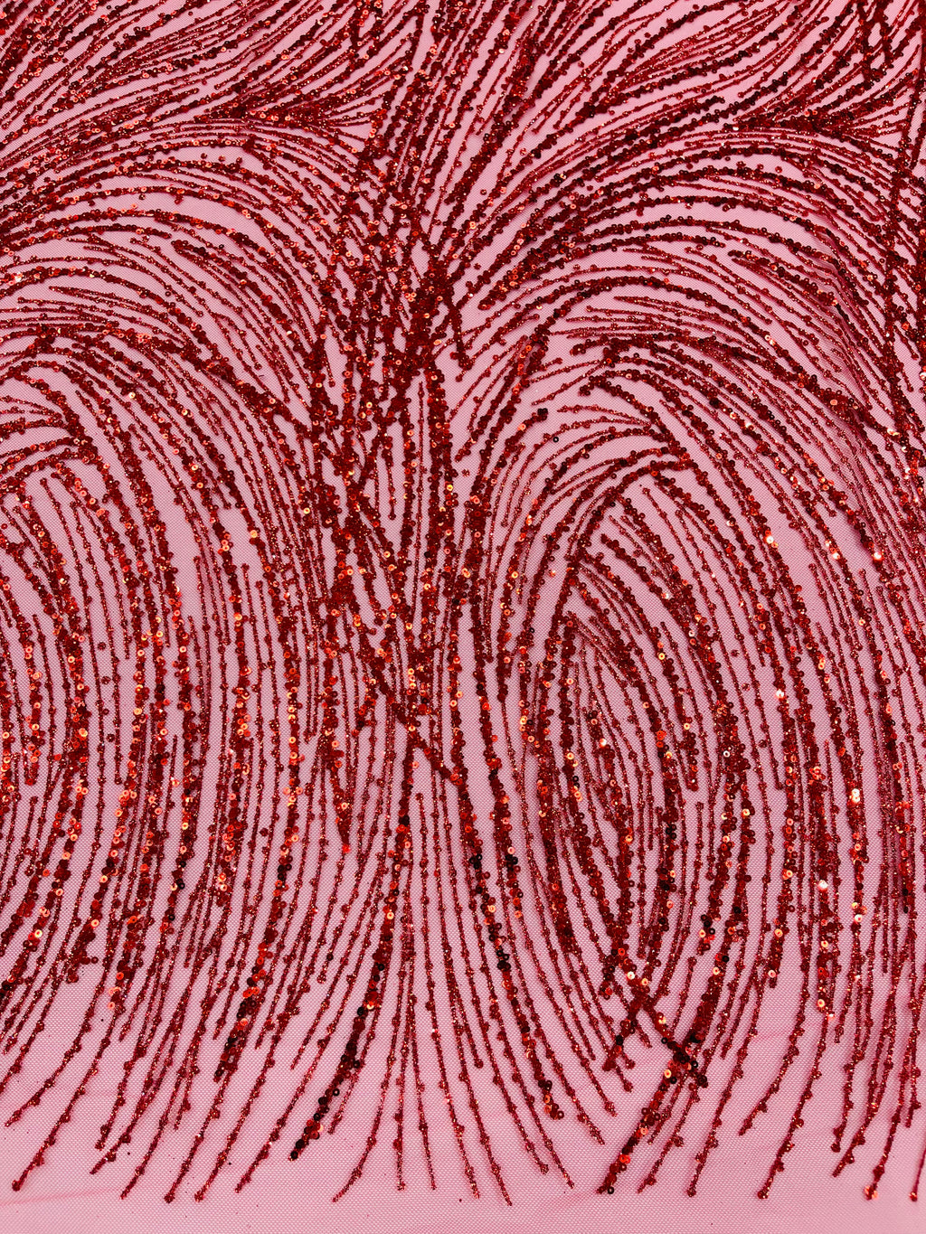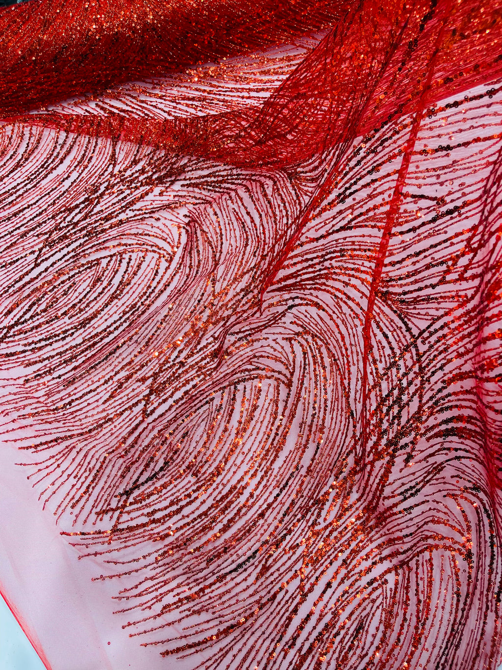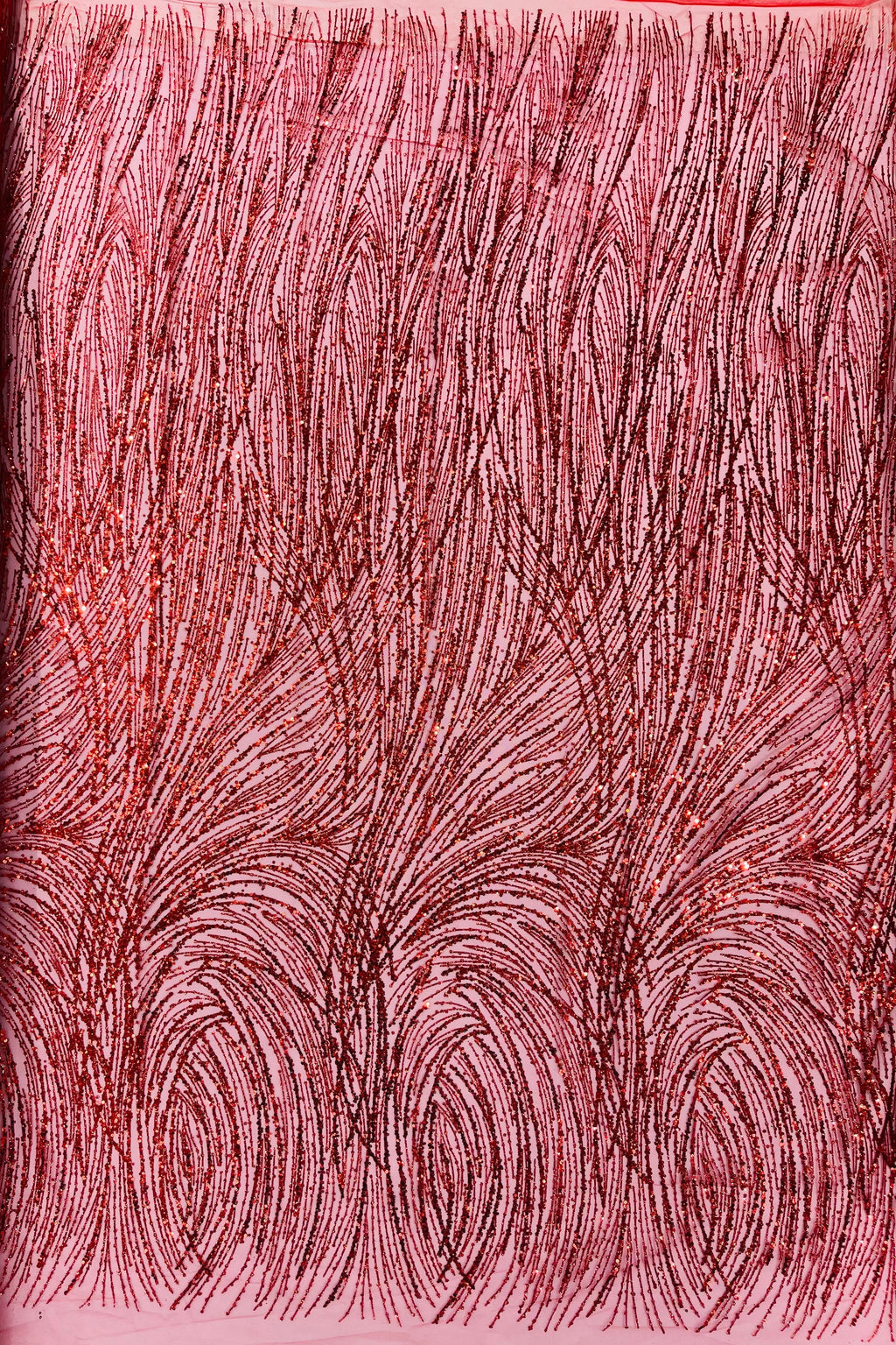 Red Glitter Mesh Lace Fabric Prom/Dress By The Yard