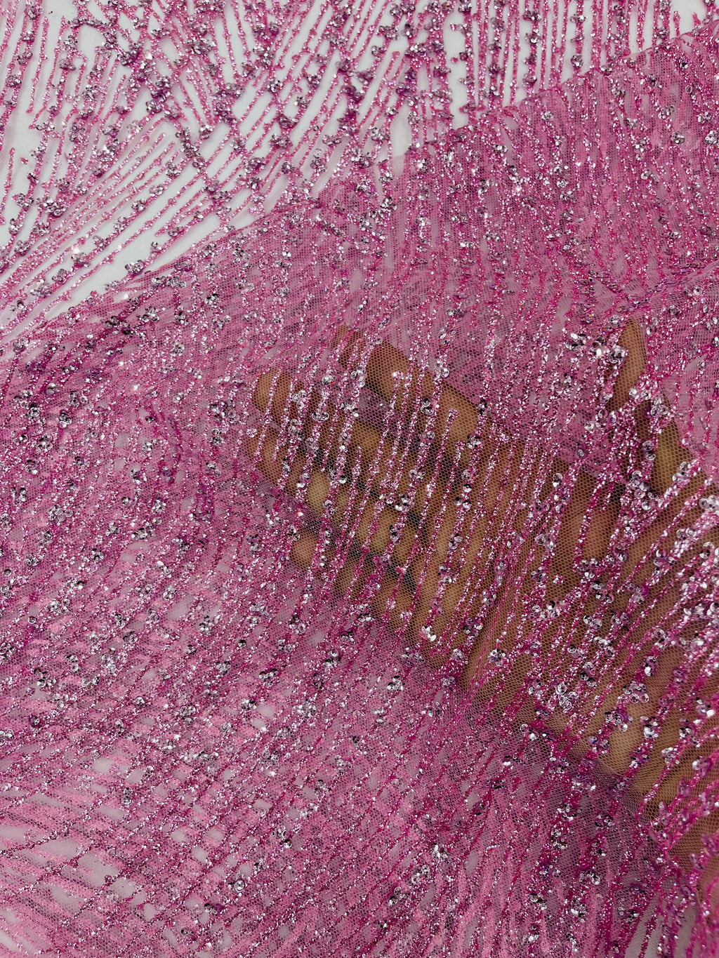 Pink Glitter Mesh Lace Fabric Prom/Dress By The Yard