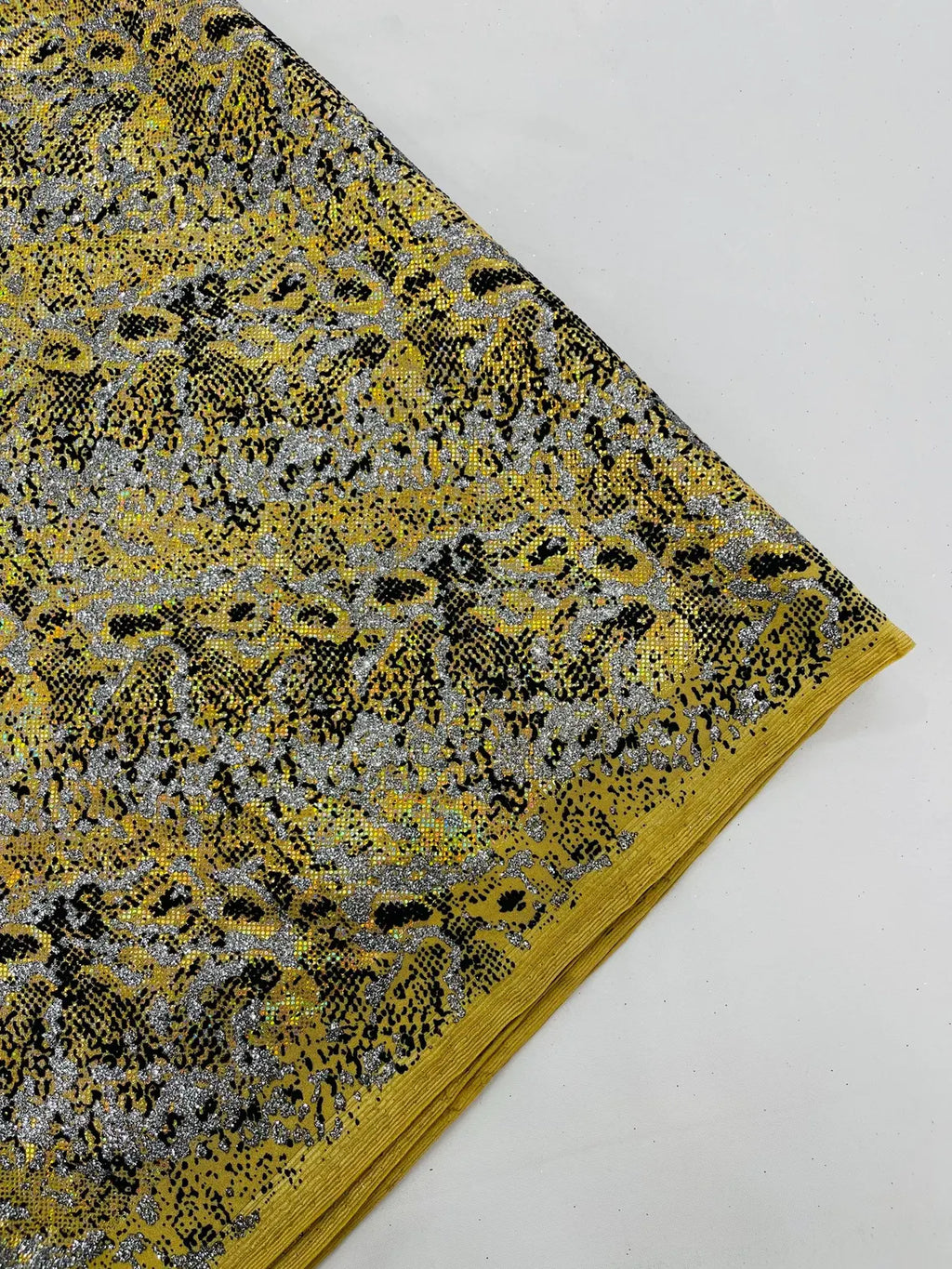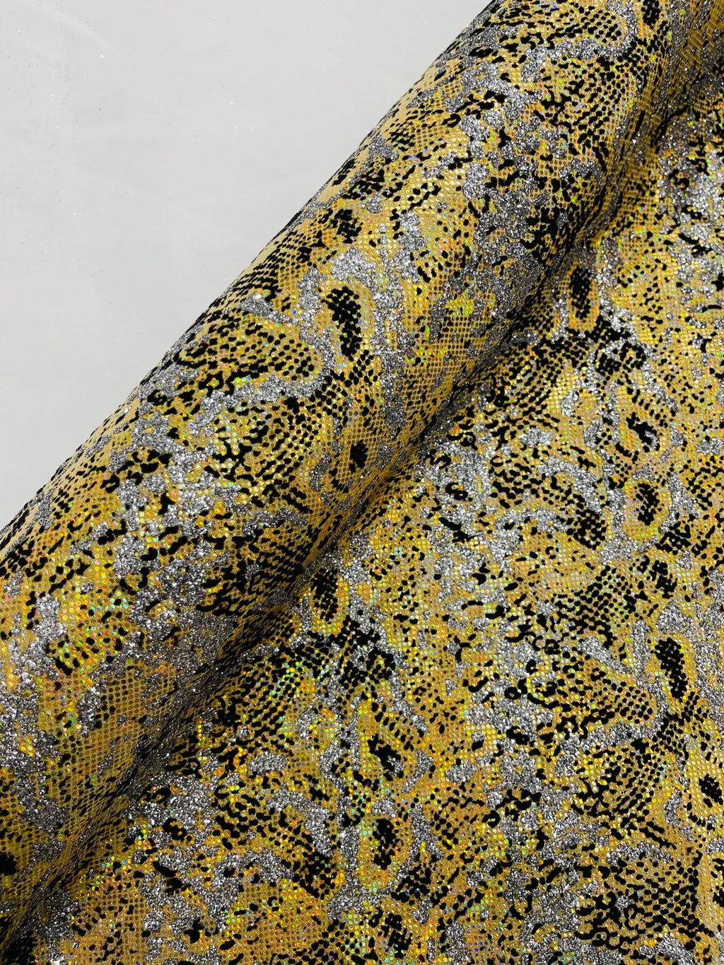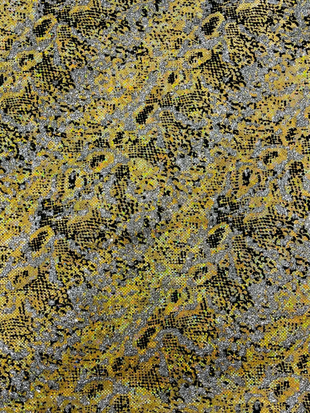 Gold Silver Glitter Snake Design Shattered Glass Nylon Spandex Fabric By Yard, Snake Flocking Hologram, Glitter Snake Nylon Spandex