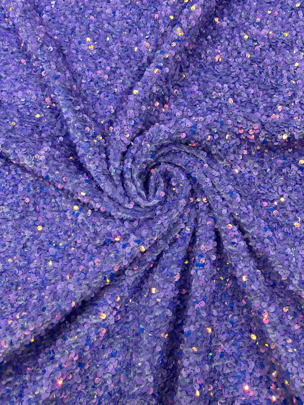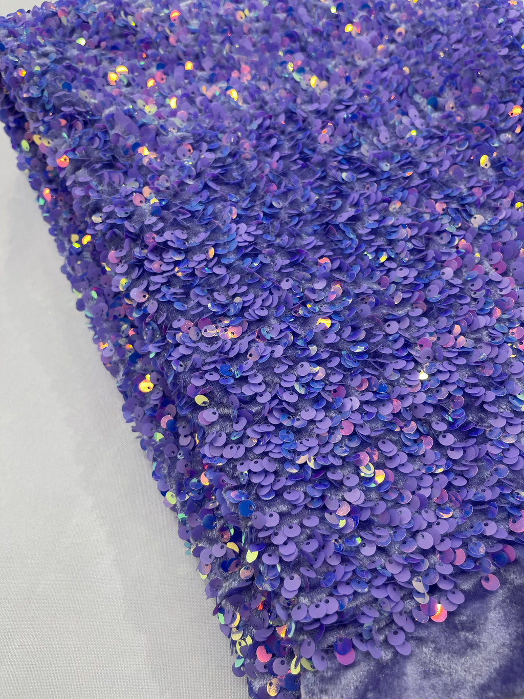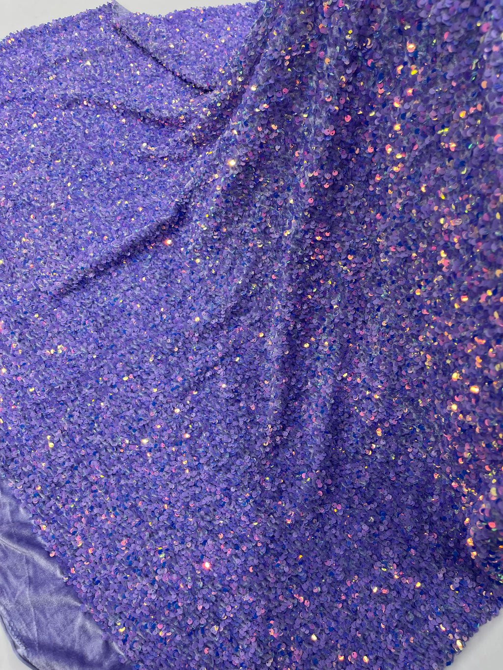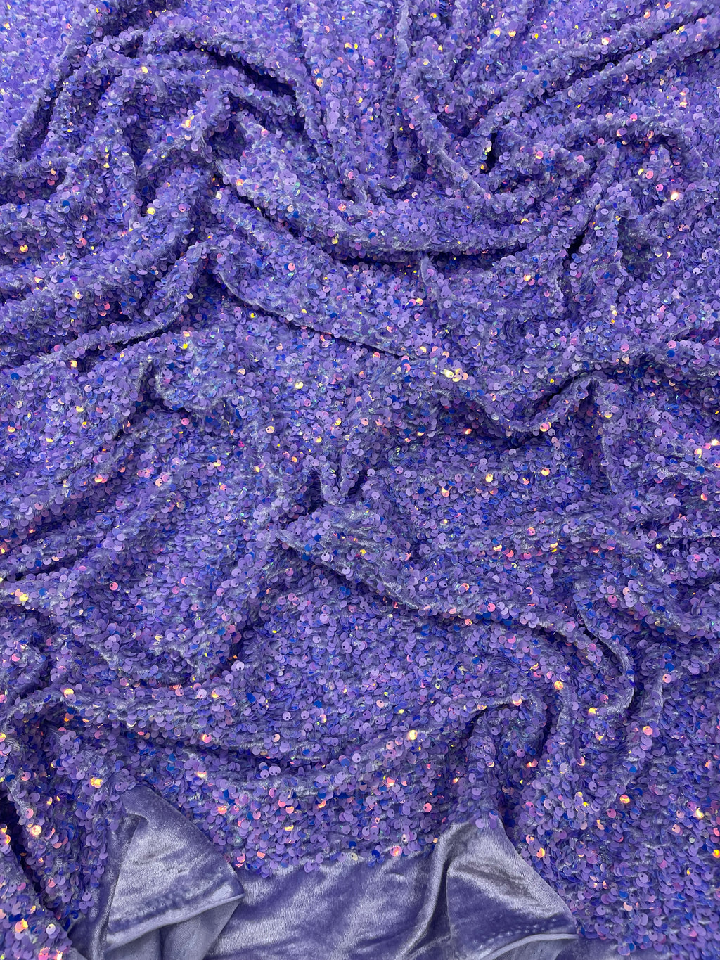 Lilac Iridescent Sequin Fabric: Lavender Stretch Velvet (58/60" Wide)